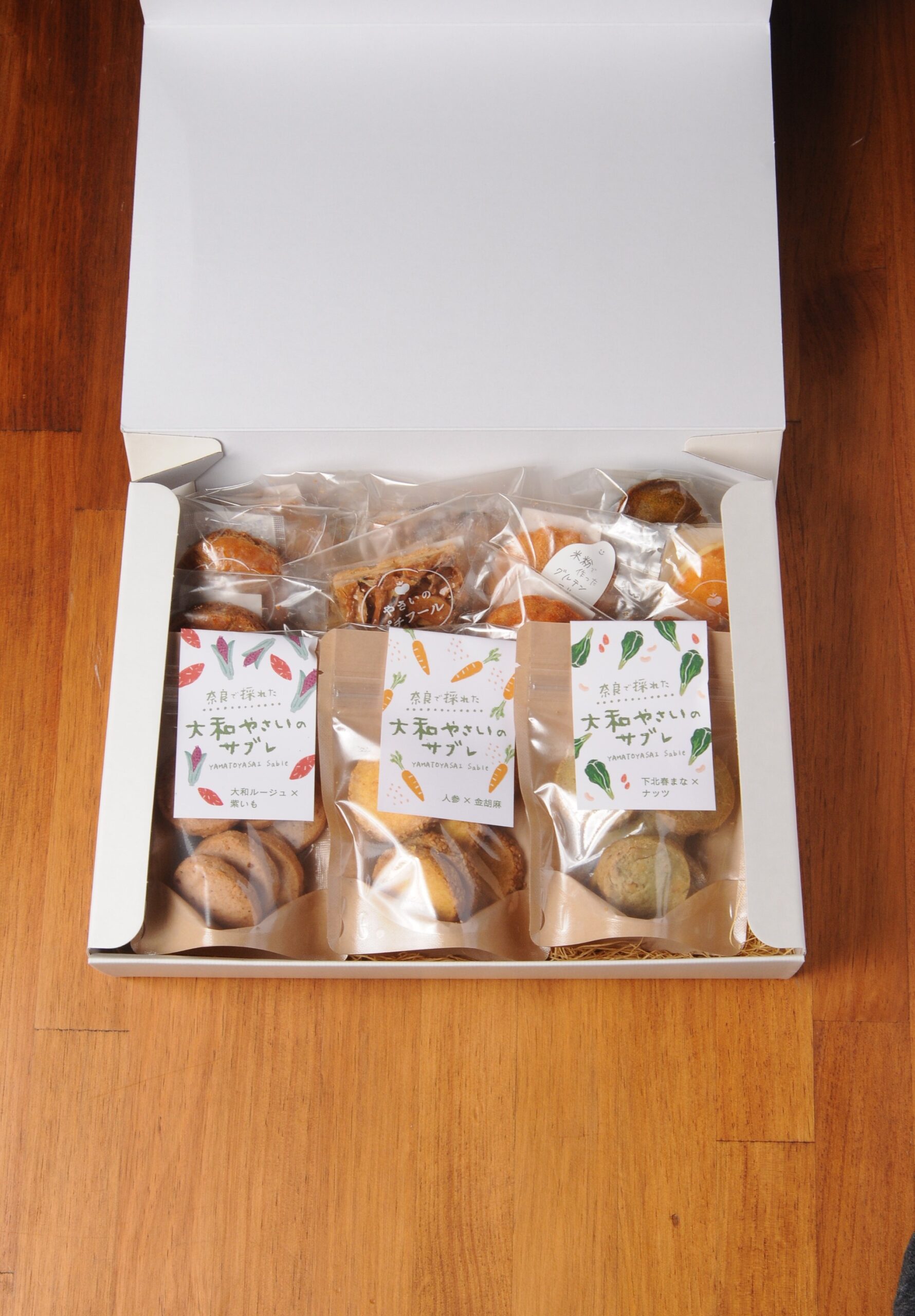 野菜の焼菓子 からだ想いのおやつセット⑧ 商品番号:cocoai-set8 野菜の焼菓子 からだ想いのおやつセット⑧ ショッピングバック(無料) 選択してください 希望しない 希望する お熨斗 選択してください 希望しない 無地のし(慶事/蝶結び) 御祝(結婚/結びきり) 御祝(その他一般/蝶結び) 御結婚御祝 御出産御祝 御誕生日御祝 内祝(結婚/結びきり) 内祝(その他一般/蝶結び) 出産内祝 御礼(蝶結び) 寿(結婚/結びきり) 寿(その他一般/蝶結び) 御挨拶 感謝 快気祝 御見舞 御供 志 無地のし(弔事/結びきり) 御年賀 御中元 御歳暮 その他(備考欄にご記入ください) お熨斗の名入れ 選択してください 希望しない 注文者名で希望する その他(備考欄にご記入ください) 包装(無料) 選択してください 希望しない 通常包装希望 メッセージシール(無料) 選択してください 希望しない お世話になりました お誕生日おめでとうございます 感謝 ほんの気持ちです ありがとうございます ¥5,550(税込) 数量 国産小麦粉、奈良県産の卵と、北海道産の甜菜糖、米油を主に使用した体にとっても優しい焼き菓子です。ココアイのお菓子には、野菜を使っている商品がたくさんあります。野菜ソムリエであるオーナーパティシエが作る野菜スイーツはお野菜の色・味・香・食感のうち、野菜のいいところを活かす配合で、まずは「お菓子として美味しい!」ということを一番大切にして、野菜も加えています。小麦粉、甜菜糖、油脂、添加物へのこだわりにより、身体に負担の少ない材料であることと、お野菜が入っていることにより身体への糖分の吸収が変わったりと、身体が喜んでくれるお菓子です。また、野菜が入っているものを食べることにより、お子様が野菜を身近に感じてくれたり、野菜を食べれる!っていう経験値になっていってほしいとの願いも込めています。サブレには、大和伝統野菜を使用しています。奈良県に古くから伝わる品種を大切につないでいきたい想いから、お菓子に取り入れることで多くの方に知っていただきたいと思っています。健康志向の昨今では、安心して食べることができるお菓子、また安心して贈ることができるお菓子が大変喜ばれます。お子様がいらっしゃるご家庭ではなおのこと、また、産後の女性の身体を気遣う出産祝いや内祝いにもお薦めです。熨斗やメッセージシール等もございますので、お申し付けくださいませ。【内容】大和ルージュ&紫芋サブレ×1、人参&金胡麻サブレ×1、下北春まな&ナッツサブレ×1、菊芋ガレット×2、福住三年晩茶ガレット×2、ごぼうのフロランタン×2、紫芋マドレーヌ、トマトマドレーヌ、小松菜とナッツのマドレーヌ、ほうれん草&黒胡麻パウンド、お米のハニージンジャーマドレーヌ、お米のとうもろこしマドレーヌ(サブレの種類を変更されたい場合は、備考欄にお書きください)※季節によって、お菓子の種類が変更になる場合もございます。ご了承くださいませ。<賞味期限> マドレーヌ 15日前後サブレ 30〜45日程度<保存方法> 高温多湿を避け、令暗所にて保管。保存料不使用、砂糖控えめの為、お早めにお召し上がりくださいませ。<配送方法> 常温発送は、ご注文日より2〜3日、繁忙期はもう少しかかることもございます。